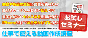 このセミナーはゼロからPR動画を作るiPhone実践動画講座のお試しセミナーです … 続きを読む 10/24 藤沢 iPhone動画作成術【お試しセミナー】